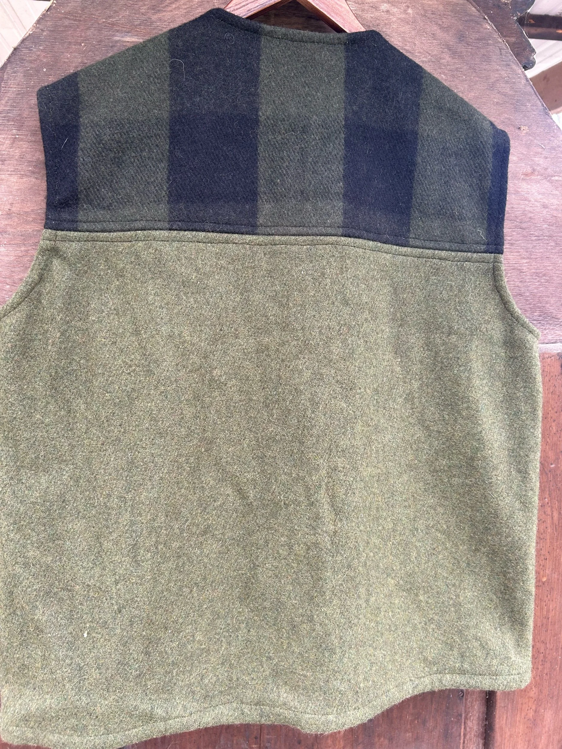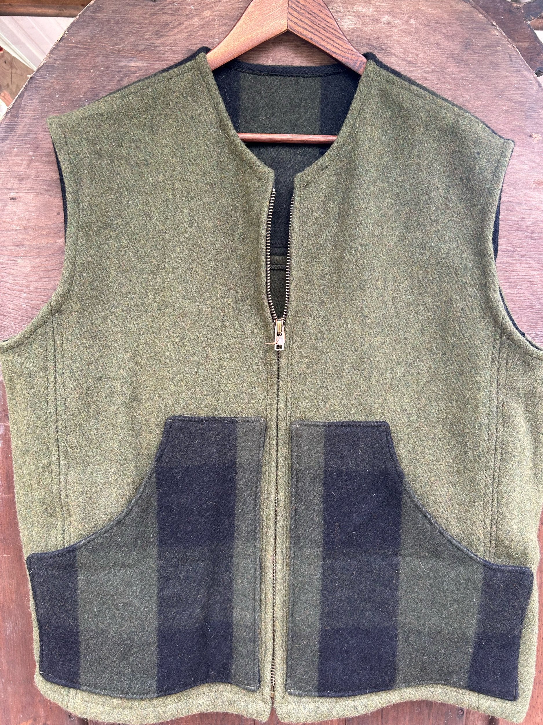 Image 1 of 3 Image 2 of 3 Image 3 of 3 Homestead vest, olive green w green plaid accents $110.00 Large 80% wool vest with flannel lined front pockets. Machine wash cold and line dry only. Get notified by email when this product is in stock. Add To Cart Added! Large 80% wool vest with flannel lined front pockets. Machine wash cold and line dry only.